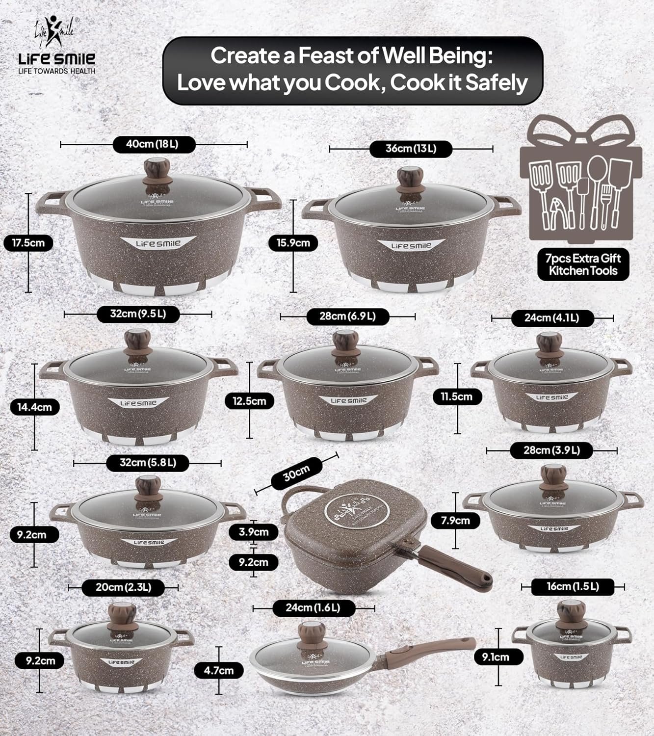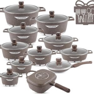 Big Summer Sale Limited Time Offer RM 9.9:LIFE SMILE Cookware Set Granite Stone 29 Pieces – Pots and Pans set Multi Layer Granite Non Stick Coating Cookware Sets 100% PFOA FREE,Complete Kitchenware Cooking Sets and Frying Pans – Lotus's Shop Online | Shop Conveniently & Get Rewarded with Lotus's Shop Online