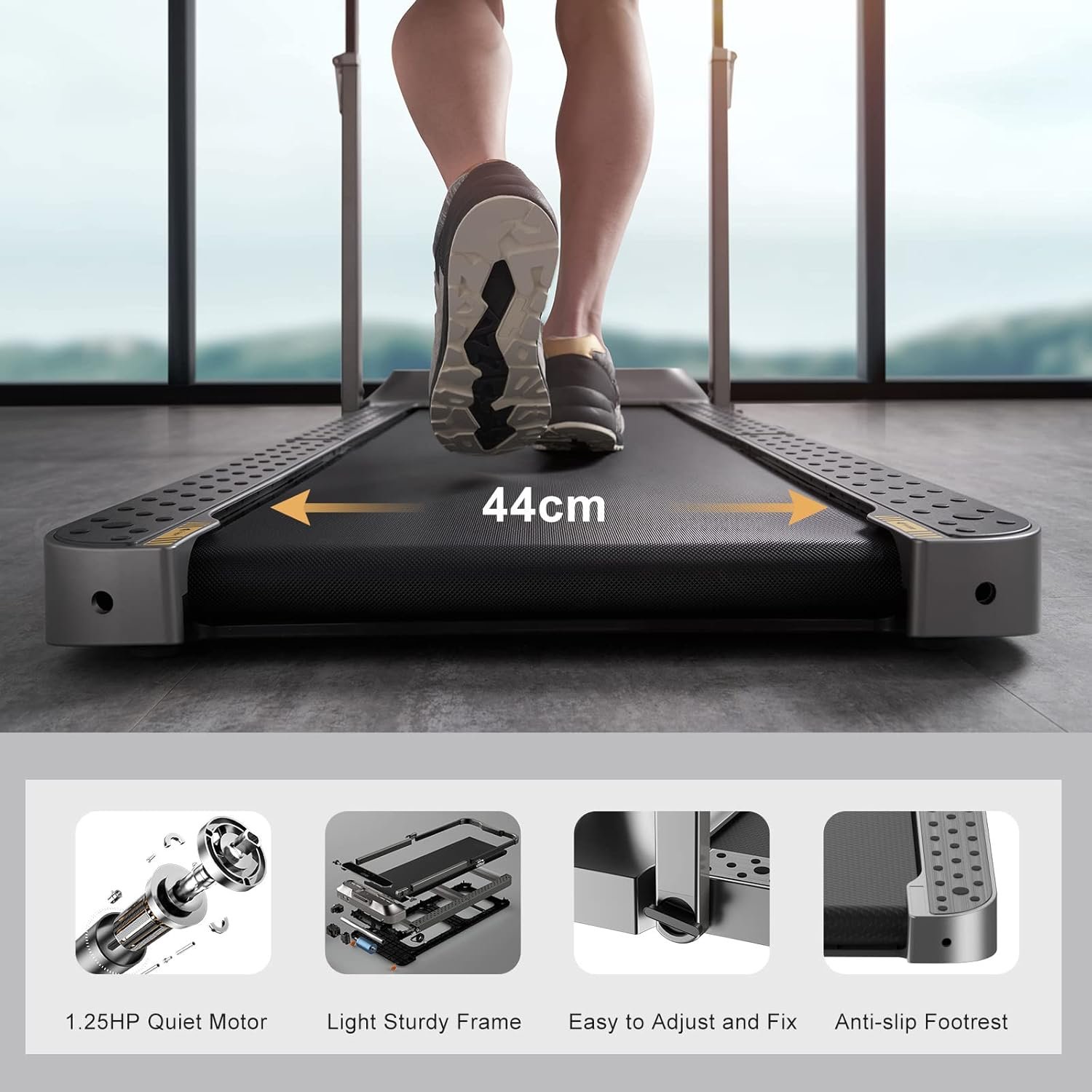- 【Quiet Motor and Shock Absorption System】By using an aluminum alloy frame, the durability and stability of WalkingPad R2 are significantly enhanced. We improved the power of the motor but also reduced the noise level at the same time. Additionally, the EVA cushioning softens the impact on your knees and the anti-slip running belt will provide a better grip. “