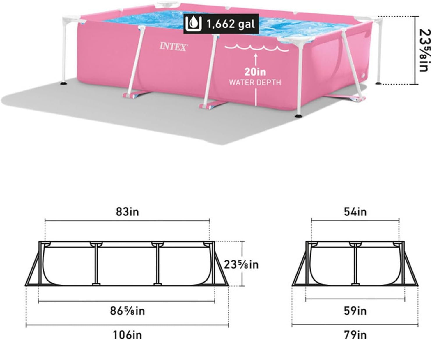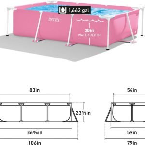 Limited-Time Sale for Summer Surprises RM 99:Intex 28266EH 7’L x 5’W x 23-5/8″H Rectangular Metal Frame Above Ground Outdoor Backyard Swimming Pool, 439 Gallons of Water, Pink